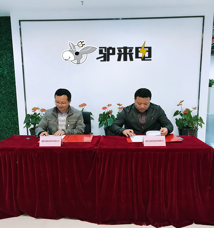 熱烈慶祝福建驢來電新能源科技有限公司與福建龍福機(jī)電市場就“驢來電”充電站成功簽約! 2017年11月22日,福建龍福機(jī)電副總何萬芬、運(yùn)營總監(jiān)黃巍偉蒞臨福建驢來電新能源科技有限公司商談“驢來電”充電站合作事宜并成功舉行了簽約儀式。